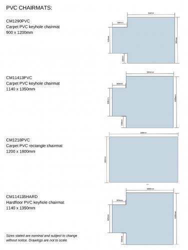 Clear PVC Chair Mat protect your carpet from the constant movement of the trolley desk chair or heavy wear areas. Available in two shapes, the keyhole shape is designed to fit under the desk and a large rectangle shaped mat for high wear areas.