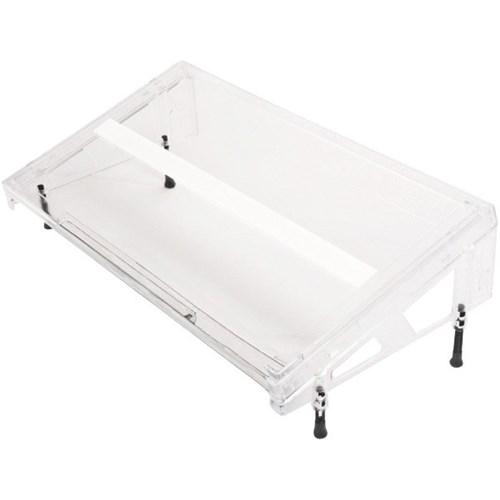 This Micodesk clear perspex copy holder ensures a comfortable body posture as the writing platform angle can be manually adjusted to suit. The Microdesk stops you reaching over papers to get to your keyboard, the paper work sits between the keyboard and computer screen. The clear perspex working surface allows you to see directly down to the desk below depending on the paper positioning. Utilises space between keyboard and computer monitor screen.