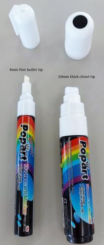 - Pens available as either a thick 10 mm Chisel tip or fine 4.5mm Bullet tip