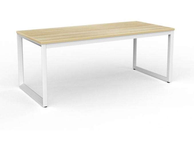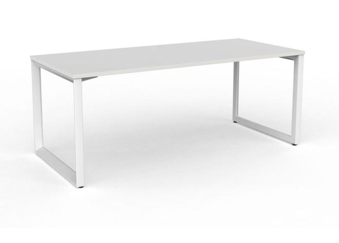 The Anvil office desk- WHITE steel frame Desk combines strong triangle end frames with heavy duty melamine tops, making this desking range perfect for individual offices and/or team based work areas. The Anvil steel frames are available in a White or dramatic Black powder coated finish and matched with white or timber Melamine tops, creating a stunning & sophisticated aesthetic effect for your office space