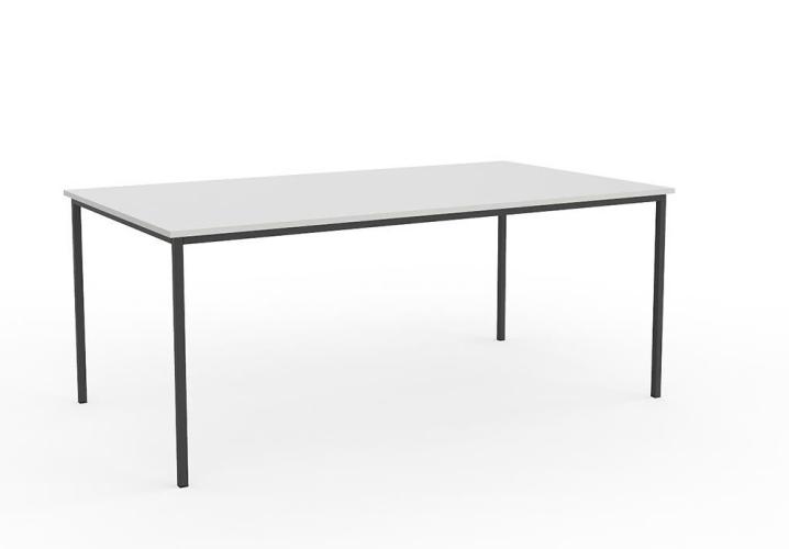 The classic canteen cafeteria table has many uses, not only as a canteen, cafeteria table but also as a display table, temporary desk, or training table. A rigid table frame of 25 mm square steel with strong 2 mm wall thickness and a powder coated black finish fitted with a 18 mm thick Melamine board top with solid 2 mm thick match edge clash. Tops available in two colour Tawa or White with matching pvc edge clash.