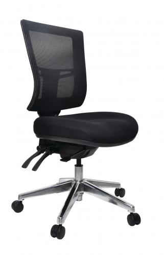 The Metro 2 -24/7 heavy duty mesh chair is the heavy duty brother of the original and hugely successful Metro Mesh chair.The Metro 2 mesh has a square style seat back and features the latest technologies in ergonomics with contemporary fine mesh and elastic knit seat upholstery.A stylish Mesh back chair as standard with a polished alloy trolley base and a fully adjustable ergonomic mechanism. Andrew Wilson ergonomist comments: A comfortable chair with no pressure points and a particularly impressive seat. The 3 lever mechanism provides wide range of adjustments that are easy to use will render this chair as suitable for a wide variety of users. As with many mesh chairs it would benefit from additional lumbar support. Youtube: How to adjust Metro chair Andrew Wilson ergonomic report The Metro 2 mesh seat is upholstered in the latest Black elastic knit fabric, other fabric options available, please contact us. The Metro 2 mesh provides great comfort with a large high density moulded foam seat and independently adjustable seat and back tilt with free floating or locking action.