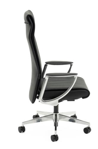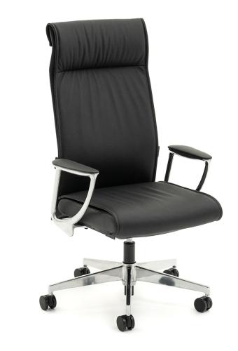 The Bentley high back executive chair has understated good looks that make this chair the preferred choice for management offices, meeting and board rooms. A quality chair with a high comfort rating so the Bentley can be your all day office chair or a luxurious board room chair. The premium full grain black leather upholstery is naturally soft and supple, the adjustable lumber support ensures all day comfort and the Ergonomic synchro mechanism moves the seat in harmony with the back recline.