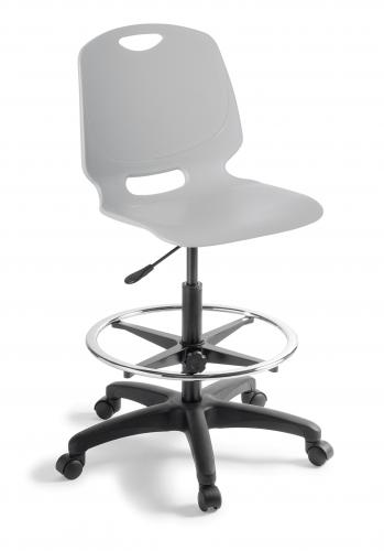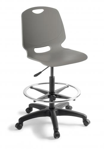 The Spark swivel technical chair is a versatile, durable swivel chair, suited to student and training room situations. Spark swivel has a heavy duty polypropylene chair shell with an ergonomic back flex. The high lift creates a stool 760 mm high to suit higher work surfaces and benches by adding the foot ring option which includes a high lift gas strut. The Spark chair shell is available in 5 standard colours, Black, Smoke,Grey,Navy and Pistachio.