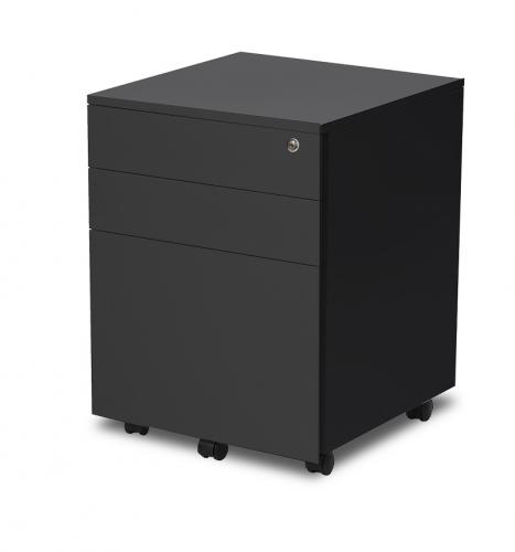 A sturdy and robust under desk standard full size Steel 3 drawer mobile unit. Mobile drawer unit with 2 box and 1 file drawer with Flush drawer front design with integrated side handle.