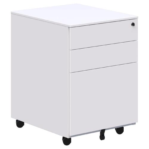 A sturdy and robust under desk standard full size steel mobile drawer unit. Mobile drawer unit with 2 box and 1 file drawer with Flush drawer front design with integrated side handle.